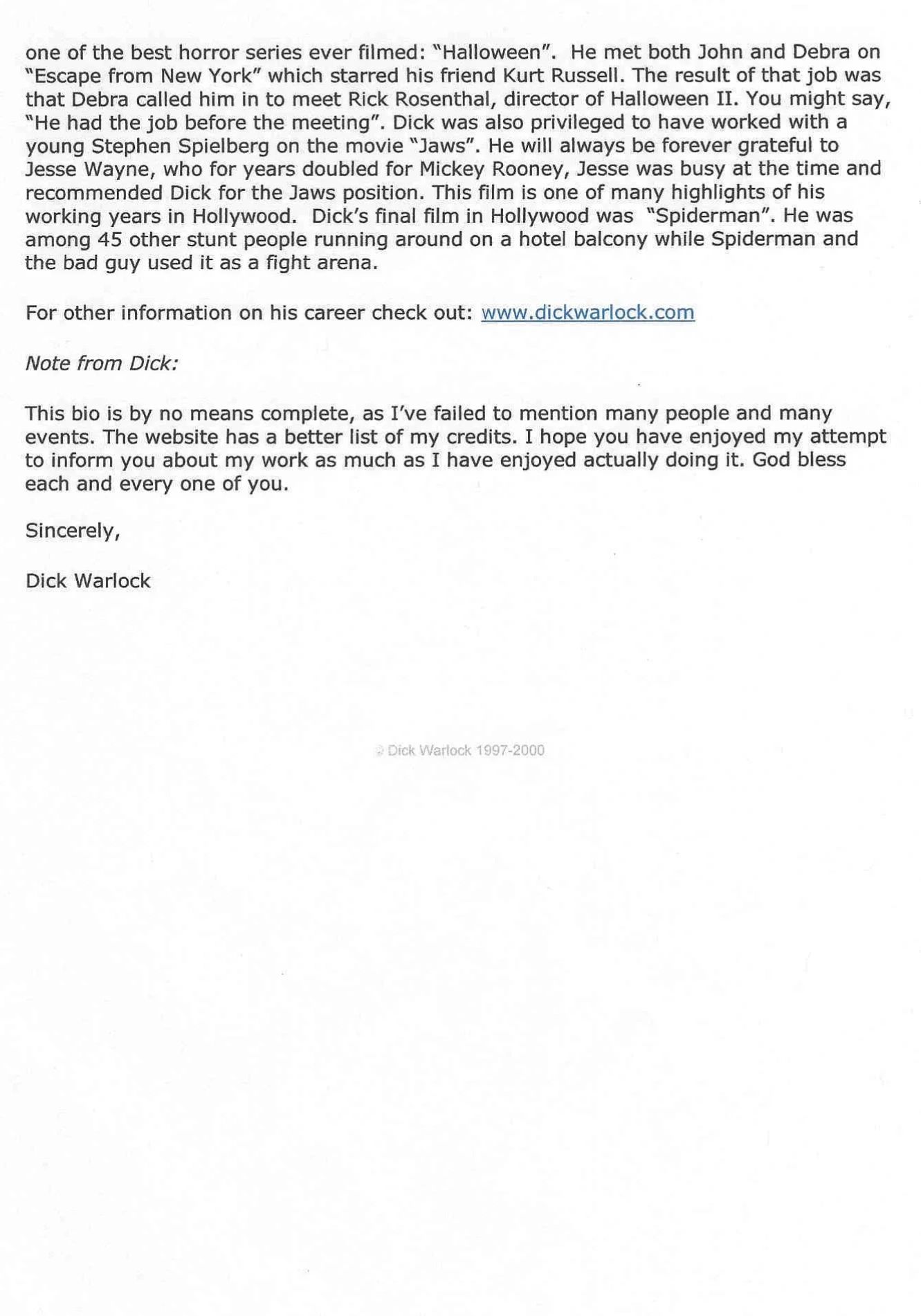 versatile skills and dynamic personality make for a memorable and entertaining performance. For more information search for Dick Warlock on IMDB.com